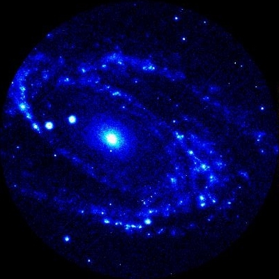 ![]() Ultra-violet shows hot young stars, in star-forming spiral arms |