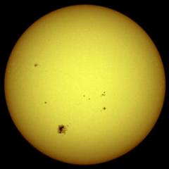 ![]() An image of neutrinos from the Sun observed by the Super-Kamiokande neutrino observatory. |