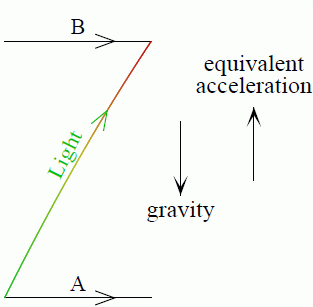 Each light ray follows a straight line relative to free-fall frames along its path.