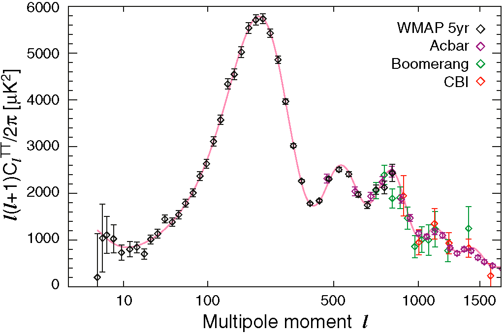 The horizontal scale is logarithmic up to l = 100, linear thereafter. |