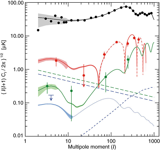 The horizontal scale is logarithmic up to l = 100, linear thereafter. |
