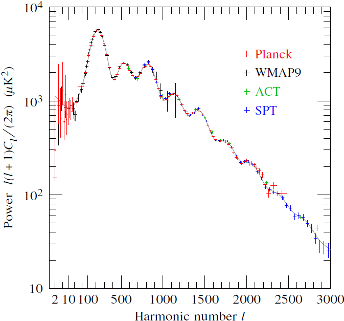 The horizontal scale is logarithmic up to l = 100, linear thereafter. |