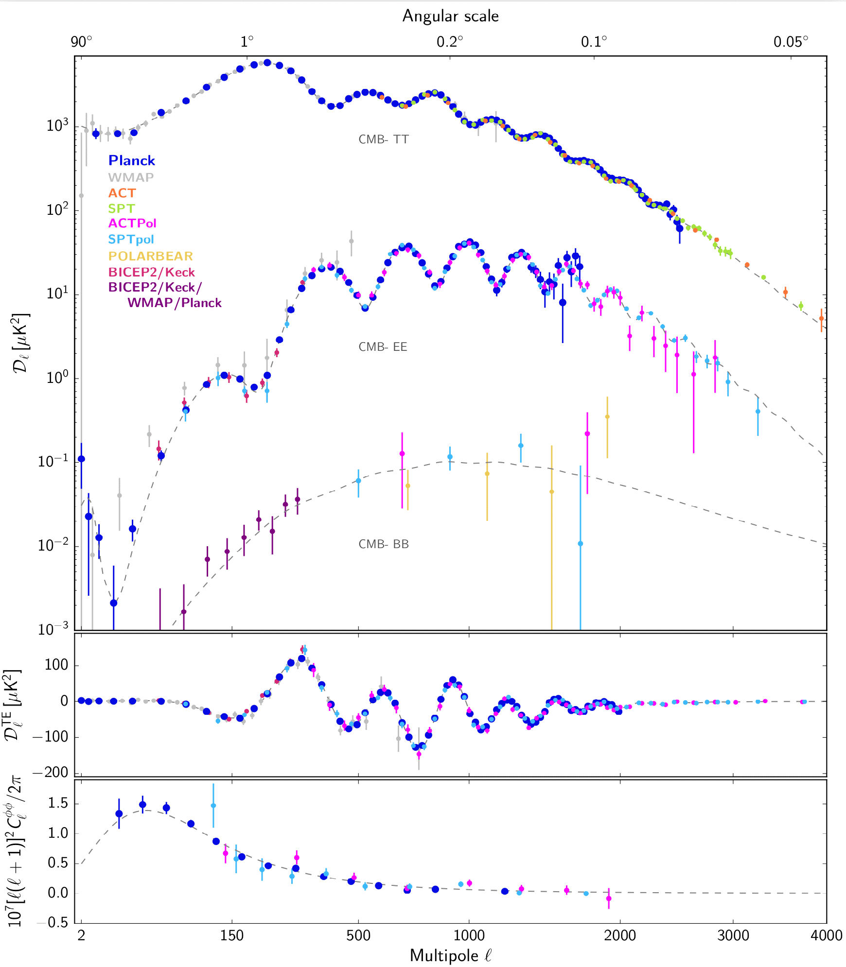 The horizontal scale is logarithmic up to l = 100, linear thereafter. |