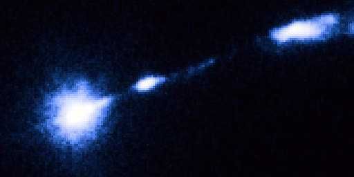 Only the approaching jet is observed in visible light.
