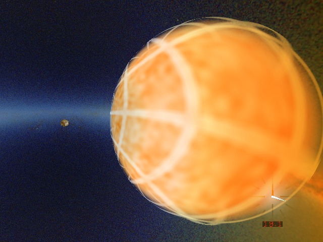 - Color shifts: the scene is blueshifted ahead, redshifted behind;