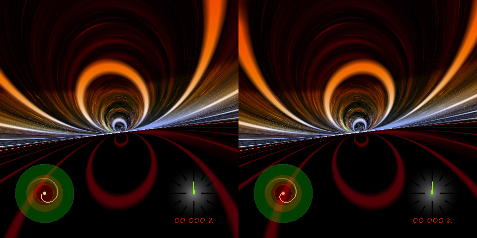 This stereo version includes only the final part of the voyage, through the horizon to the singularity.